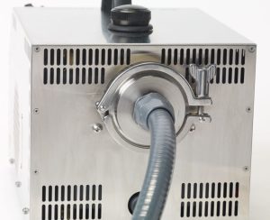 Integrated liquid fill sight glass, drain port, and power cord storage make operating, transporting, and storing the 6D simple and easy. An optional hose adapter kit, used to introduce aerosol remotely, connects easily to the standard outlet using the sanitary flange or simple NPT connection.